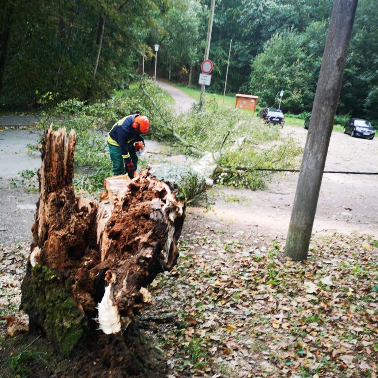 44/2020 06.10.2020 - Richtung Holzendorf - Sturmschaden, Baum auf Fahrbahn