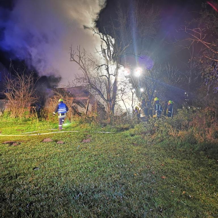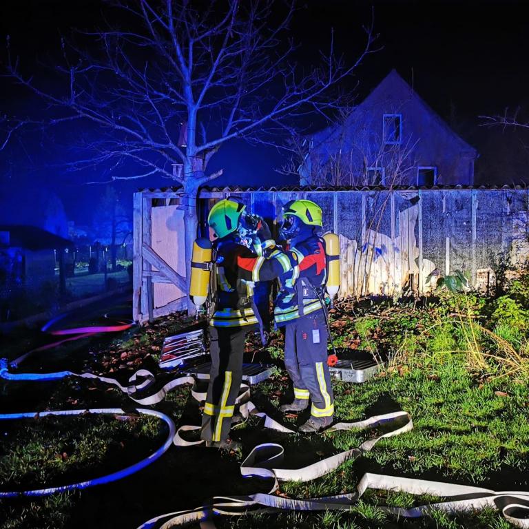 37 - 28.11.2021 - Brüel Feldstrasse - Brand einer Gartenlaube - Nachlöscharbeiten